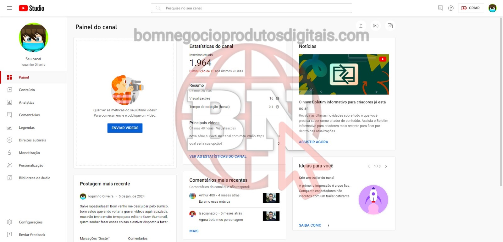 -CANAL DO YOUTUBE DE 1K NÃO MONETIZADO A VENDA-