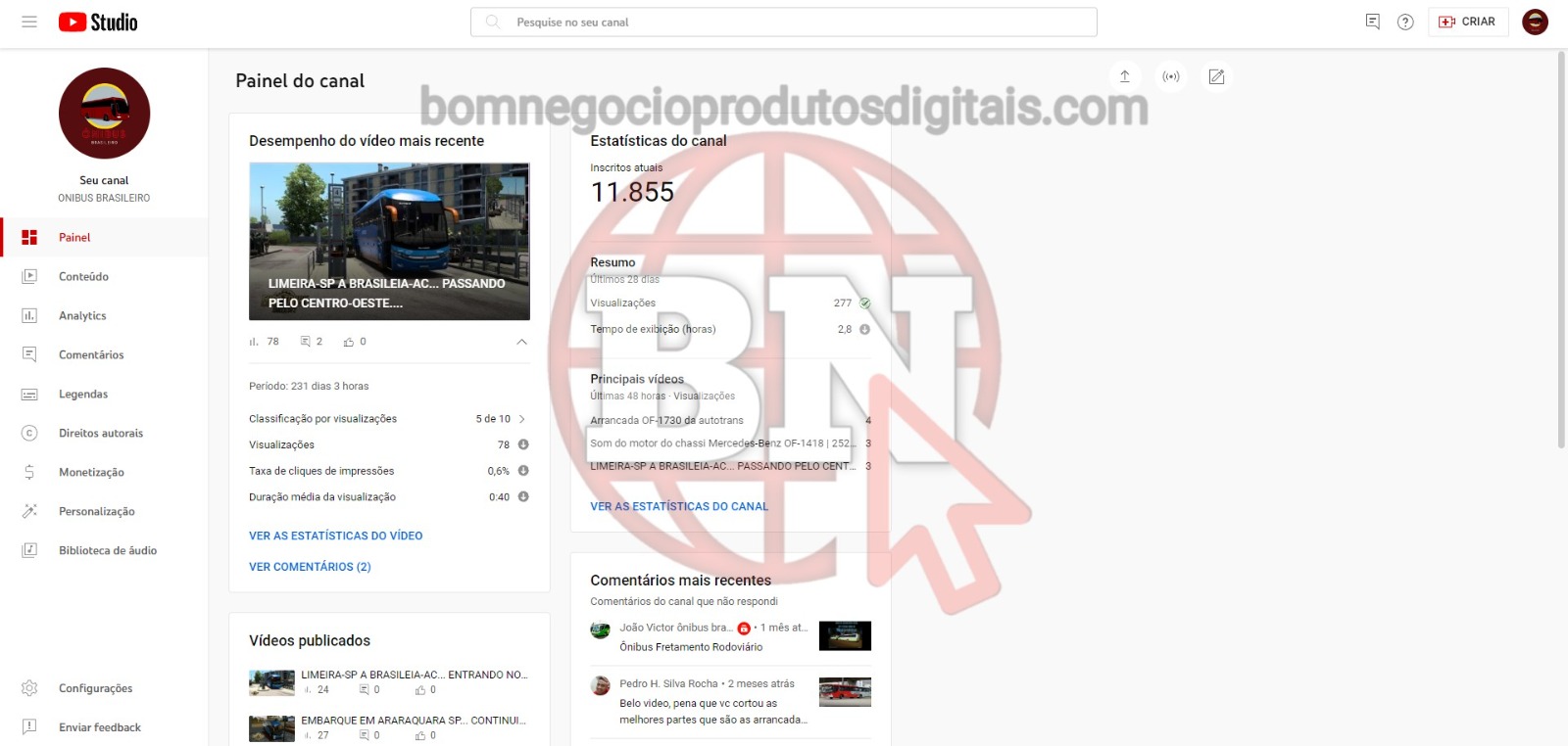 -CANAL DO YOUTUBE DE 11K NÃO MONETIZADO A VENDA-