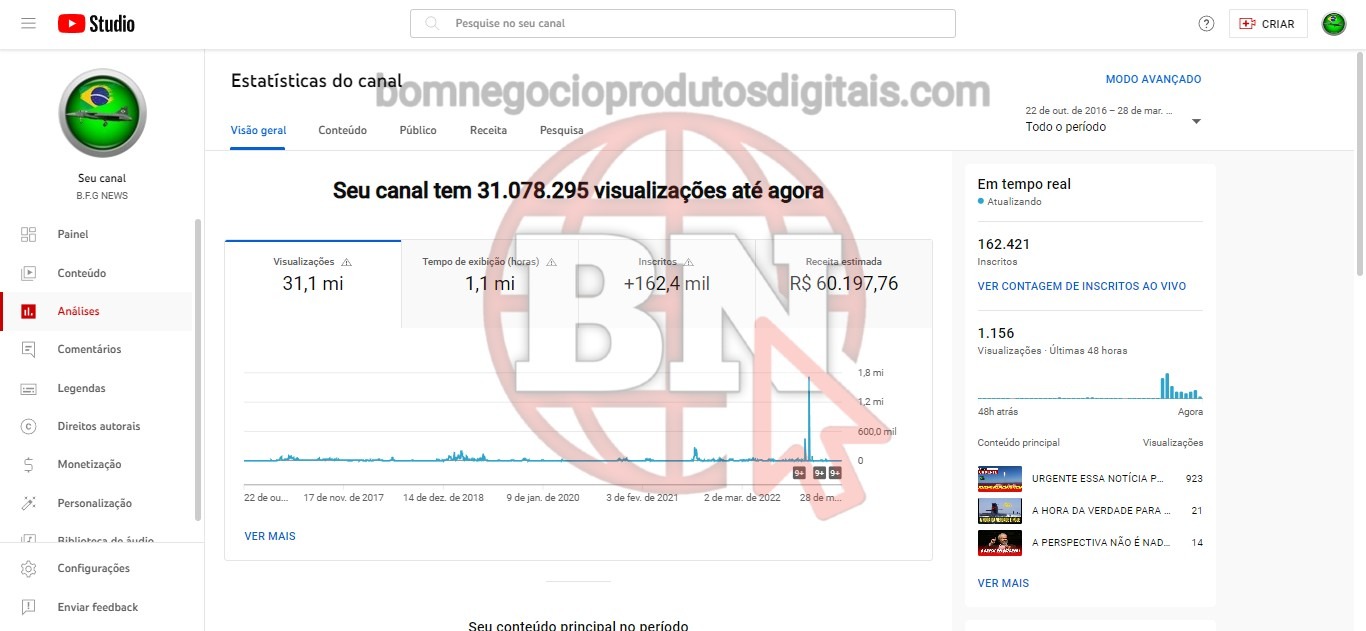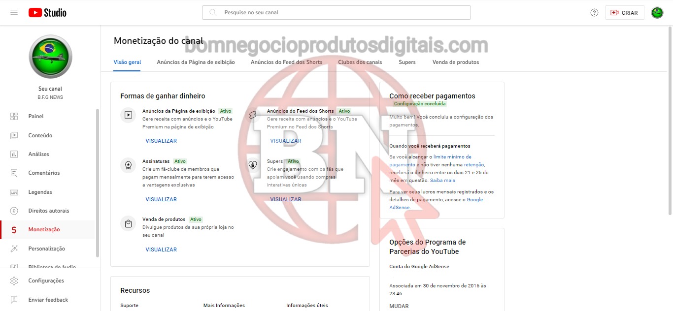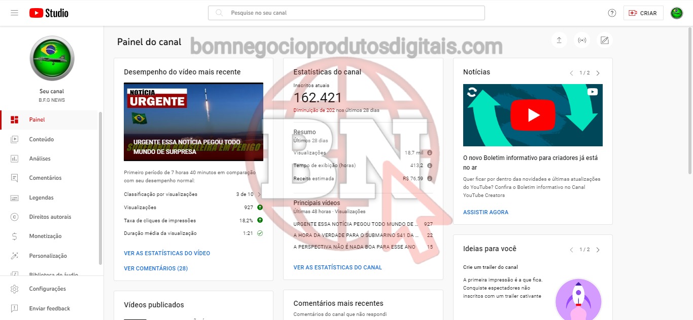 CANAL DO YOUTUBE DE 162K MONETIZADO – NOTÍCIAS DO BRASIL
