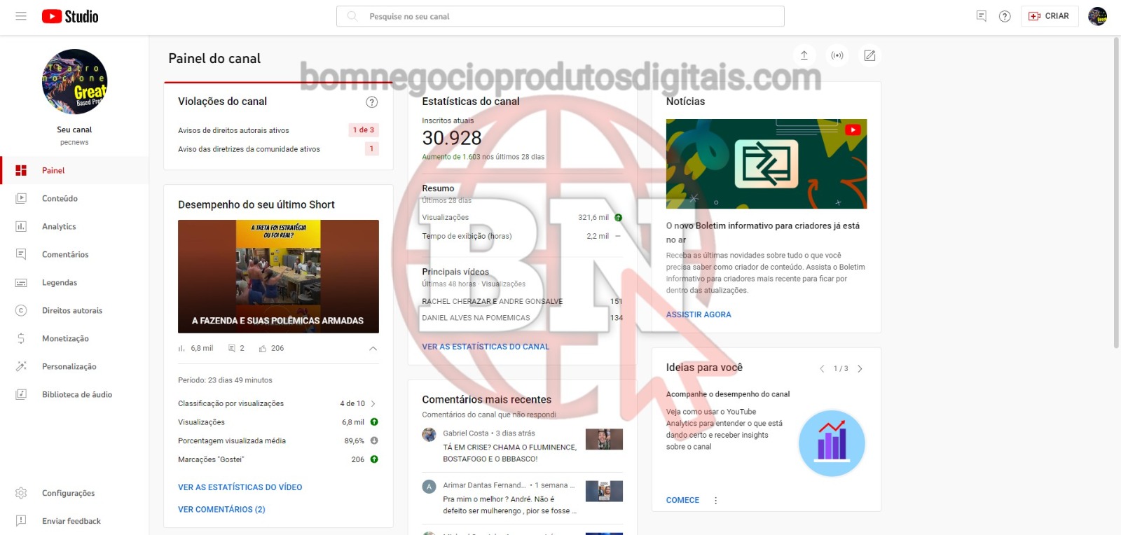 -CANAL DO YOUTUBE DE 30K NÃO MONETIZADO A VENDA-