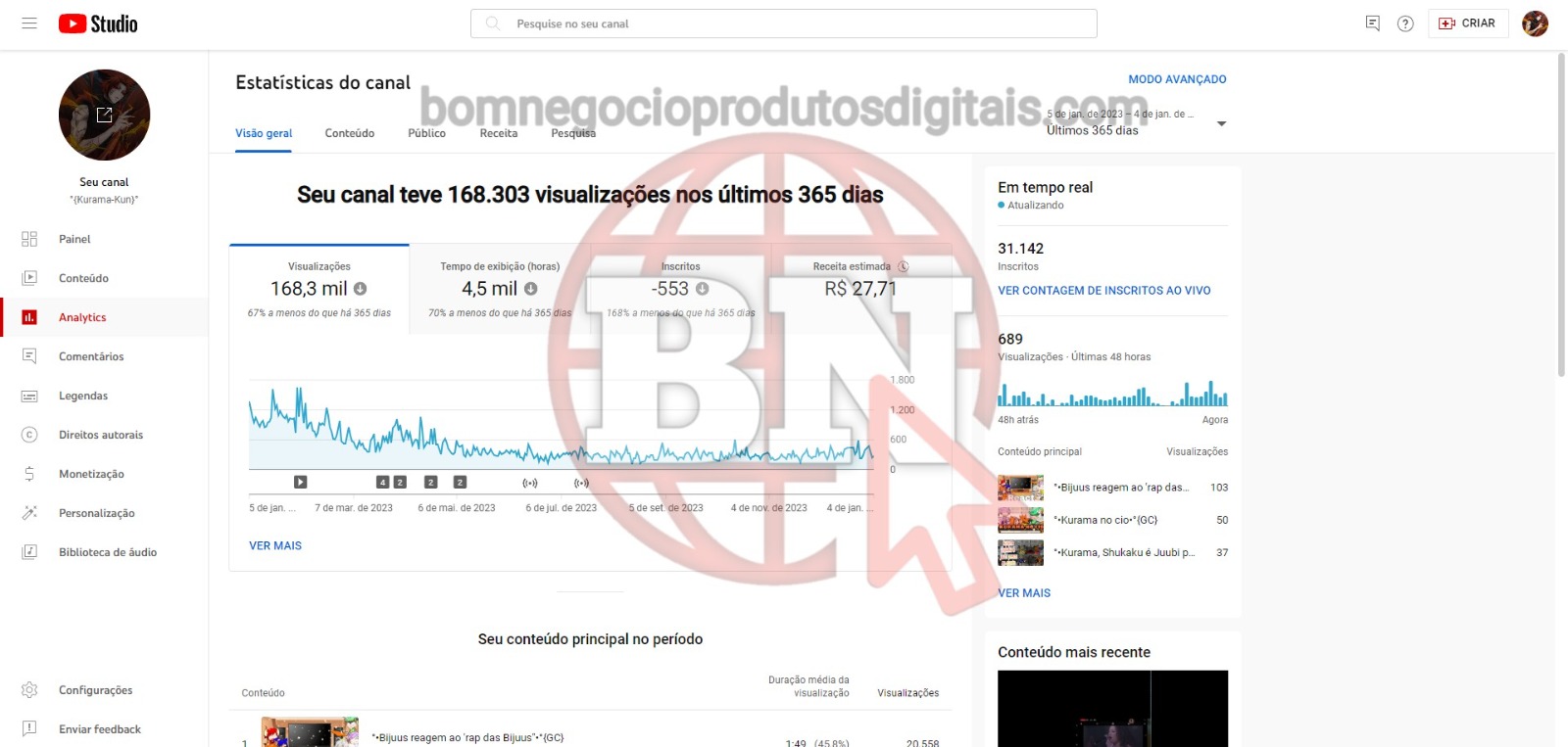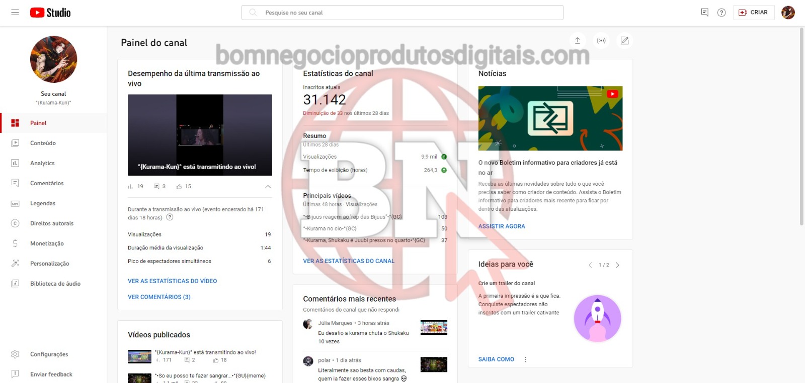 -CANAL DO YOUTUBE DE 31K MONETIZADO A VENDA-